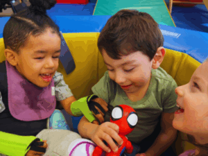 Students shared a Spiderman toy, showing curiosity about one another and learning the joy of connection through shared play.