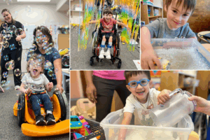 Our preschool students are learning through accessible play! Students washed cars and then experienced rolling, walking, and running through their very own car wash.