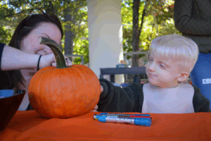 Preschool students in Class 1 used a switch pourer to add paint and confetti to their class pumpkin. The pumpkin was submitted to the School’s formal pumpkin decorating contest. Click here to view all of the contest entries!