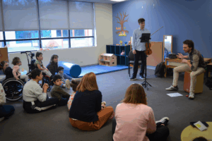 The children loved exploring rhythms and sounds throughout the residency. For example, Camden used eye-gaze technology to share that he was listening to and enjoying a performance of “If You’re Happy and You Know It!” Click here to watch Camden use this technology in real-time.